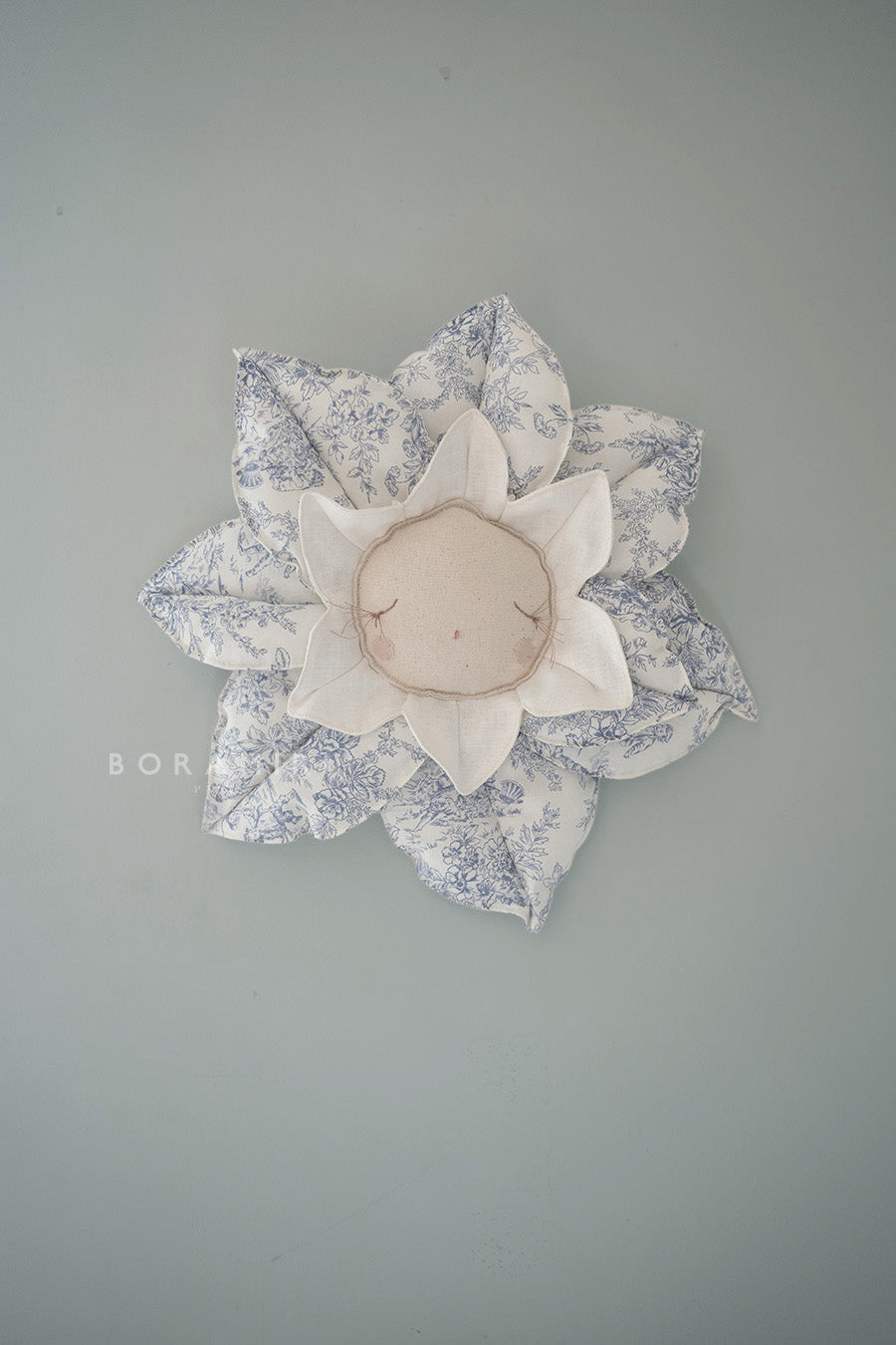 Avec ses pétales délicats et son visage paisible, cette fleur poétique apporte une touche de tendresse et de rêverie à la décoration murale.